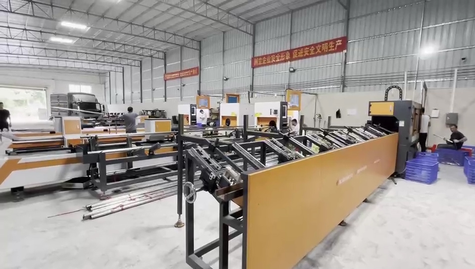 江門(mén)星航擁有3臺(tái)全能型三維激光切管機(jī),2臺(tái)圓管專(zhuān)用高速激光切管機(jī),捷泰克的左右對(duì)稱(chēng)機(jī)型幫助星航節(jié)省了占地面積,激光操作工可以在一條通道輕松操作兩臺(tái)激光切管機(jī),提高生產(chǎn)效率。